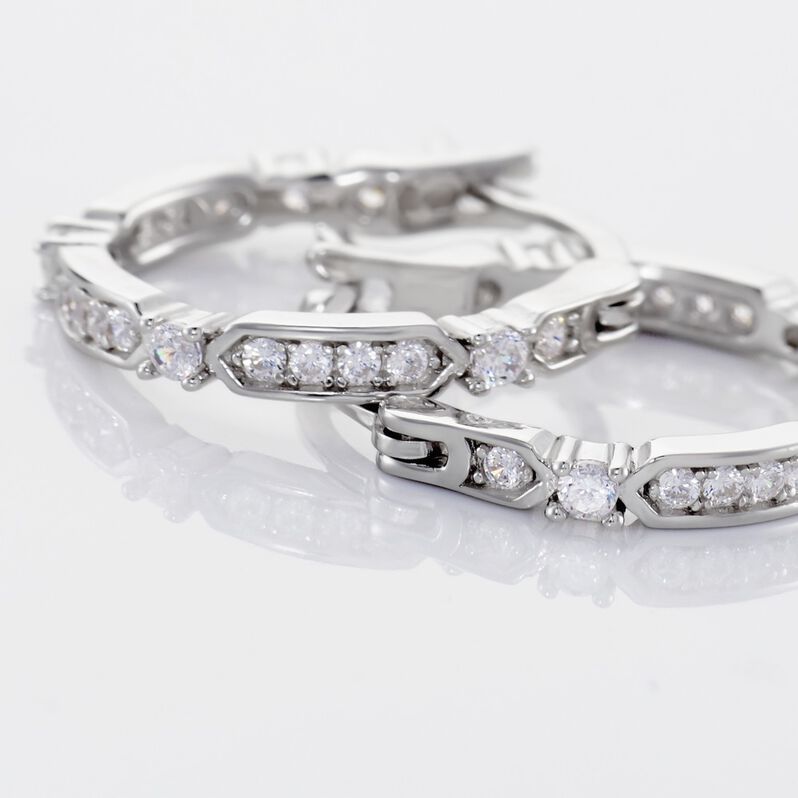 RENATA Damen Creolen Silber Silber 925 Zirkonia Weiß 0,5 ct - Creolen Damen | OROVIVO