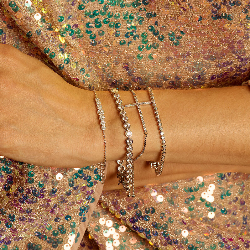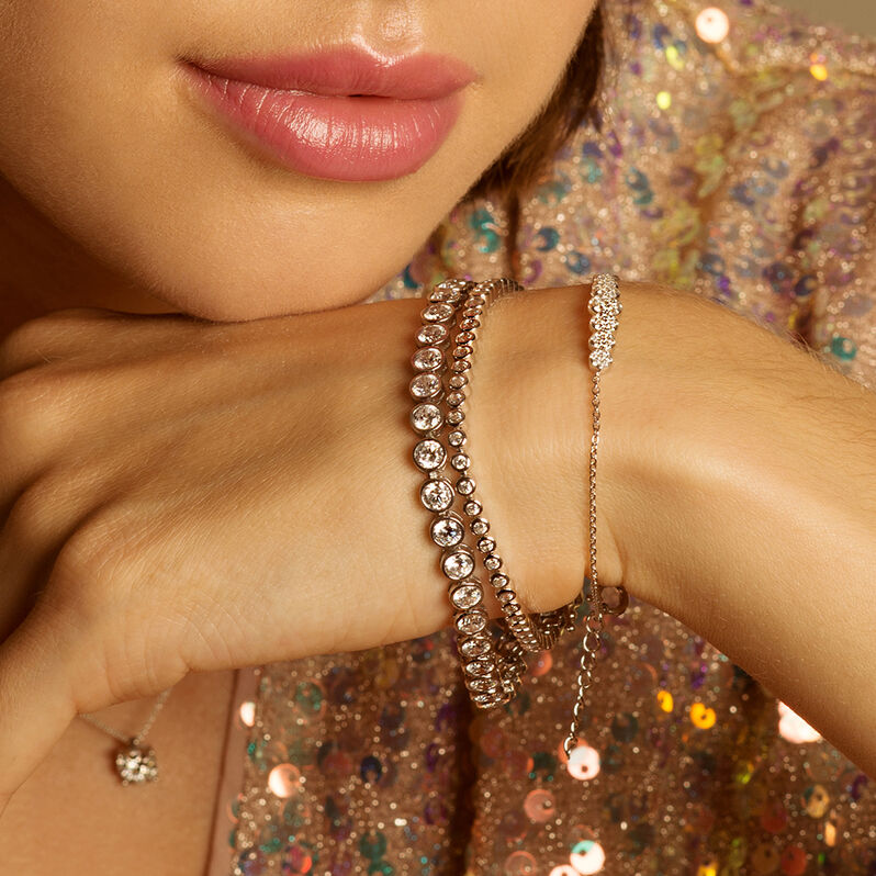 Damen Armband Silber Tricolor 925 Zirkonia Weiß 10,23 ct Halbkreis - Kugelarmbänder Damen | OROVIVO