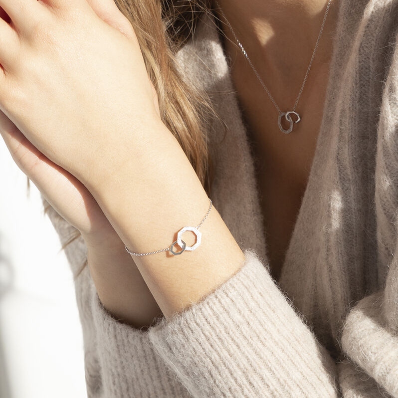 YALAZ 1 Damen Armband Silber 925 Zirkonia Weiß Doppelkreis - Armbänder mit Anhänger Damen | OROVIVO