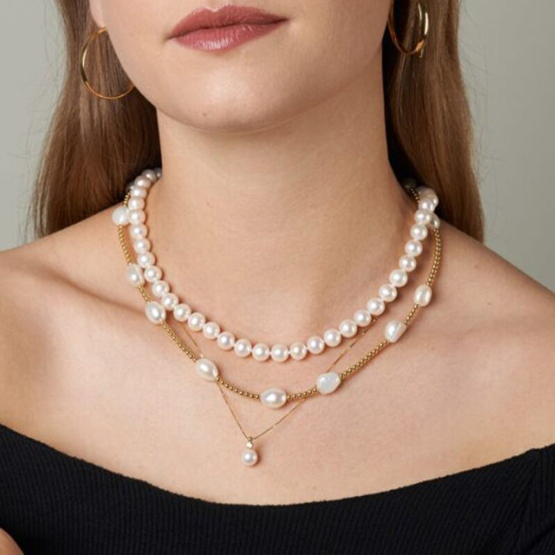 ALDEPHIA 4 Damen Collier Silber 925 Zuchtperle Perlmutt Ball B 7 mm - Halsketten Damen | OROVIVO