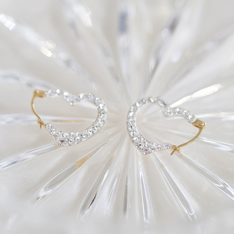 HANNELORE 5 Damen Creolen Gold 375 (9 Karat) Kristall Weiß Herz B 0,65 mm - Creolen Damen | OROVIVO