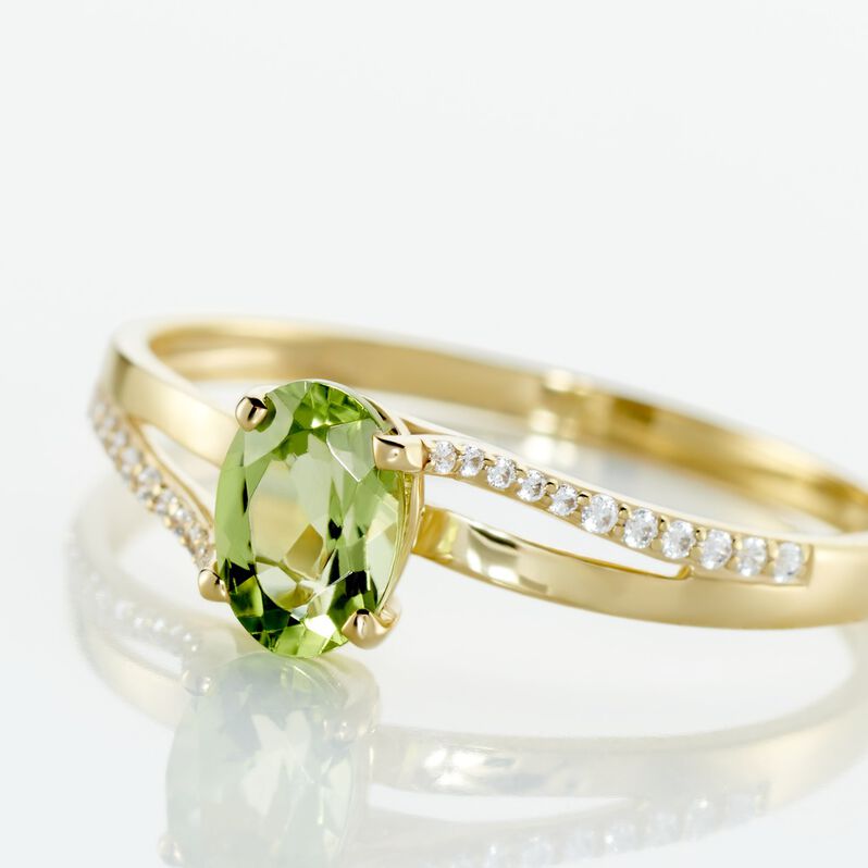 ELENEA Damen Ring Gold 375 (9 Karat) Peridot Grün 0,89 ct Oval - Solitärringe Damen | OROVIVO