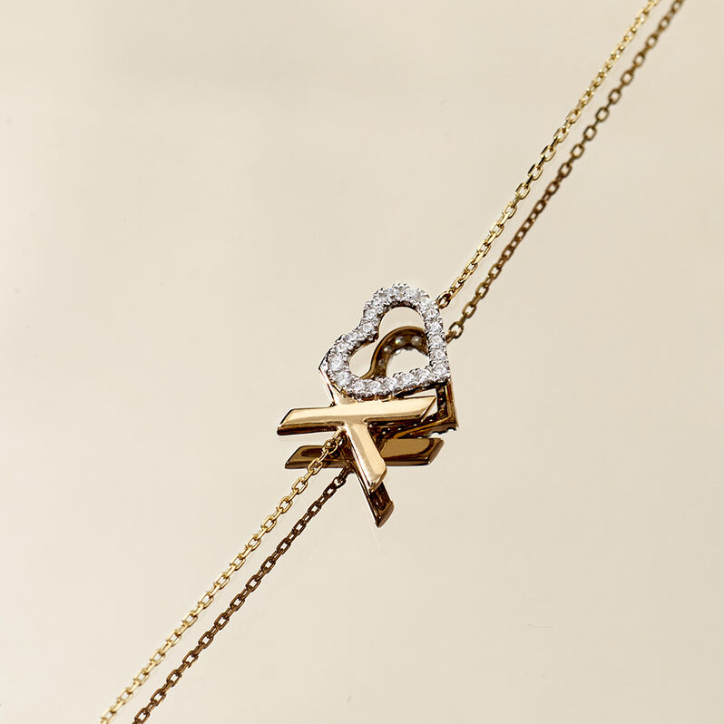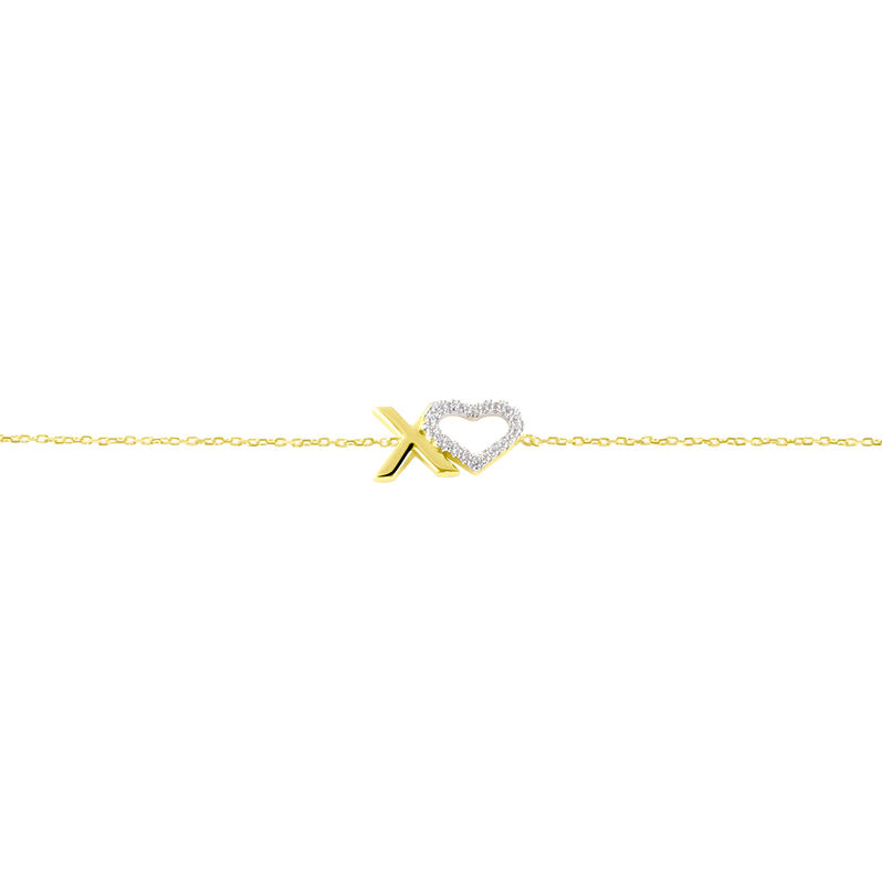 Xoxo Damen Armband Gold 375 (9 Karat) Zirkonia Weiß 0,02 ct Herz B 0,65 mm - Armbänder mit Anhänger Damen | OROVIVO