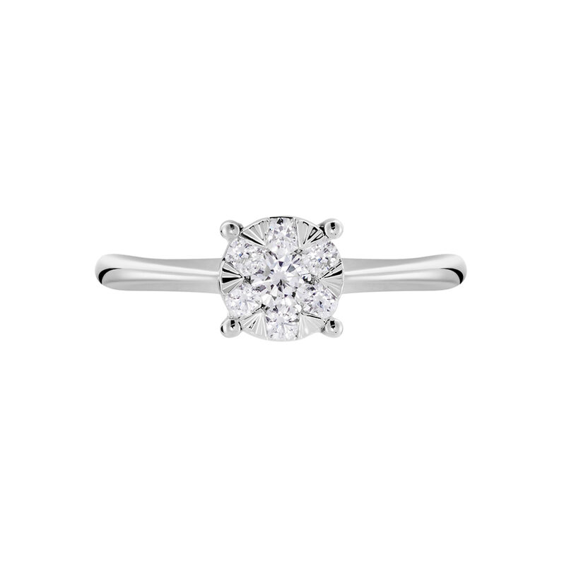 LATA Damen Ring Weißgold 375 (9 Karat) Diamant Weiß 0,1 ct Welle - Ringe mit Stein Damen | OROVIVO