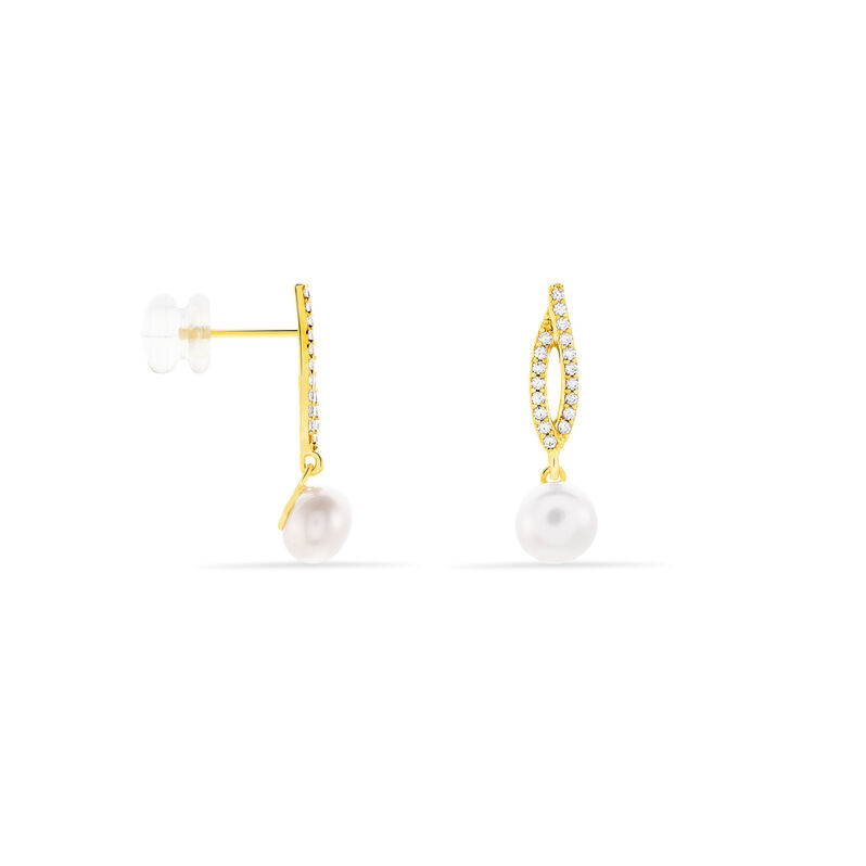 TESNIMAE Damen Ohrringe Lang Gold 375 (9 Karat) Zuchtperle Weißer Perlmutt 10,37 ct Mandel - Ohrringe Damen | OROVIVO