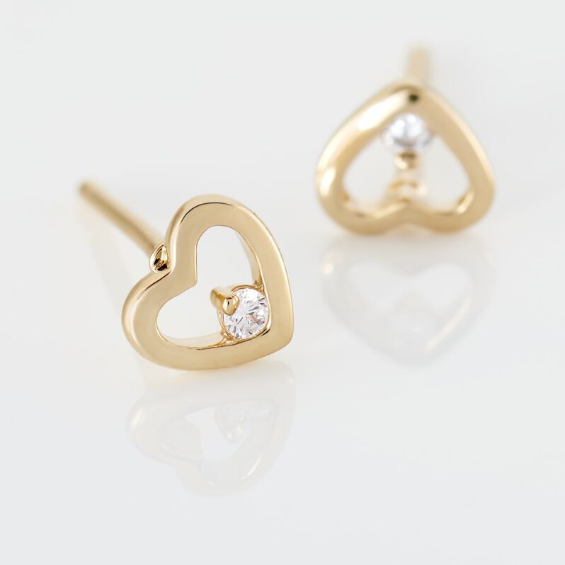 ALEXANDRA 50 Damen Ohrstecker Vergoldet Zirkonia Weiß Doppelherz - Ohrstecker Damen | OROVIVO