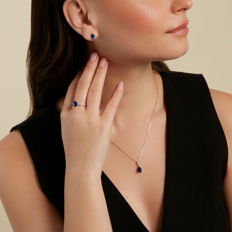Talida Set Silber 925 Zirkonia Blau bestehend aus Ring, Kette & Ohrringen