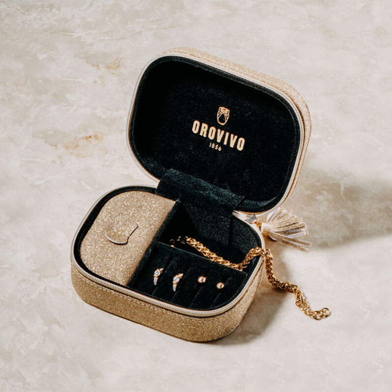 OROVIVO Schmuckschatulle Gold mit 2 Fächern - Schmuck mit Stein Damen | OROVIVO