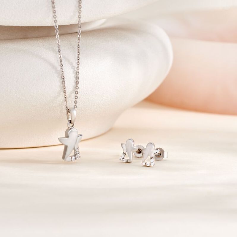 Lovisa 925 Zirkonia Engel Kinder bestehend aus Ohrringen & Kette