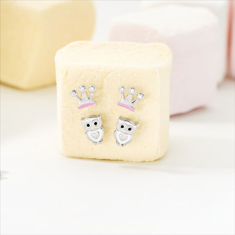 VILJAKRONE Kinder Ohrstecker Silber 925 Zirkonia Weiß - Figur Krone - Ohrstecker Kinder | OROVIVO