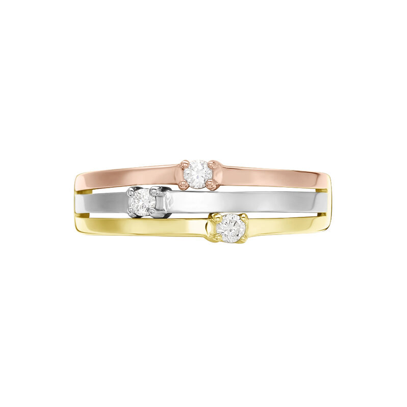 SUPERPOSITION 3 Damen Ring Gold Tricolor Gold / Weiß / Rosé 375 (9 Karat) Diamant Weiß 0,09 ct - Ringe mit Stein Damen | OROVIVO